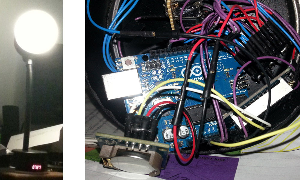 A few more instructables later about LED driver circuits and using real time clocks, etc. and I was diving into the unknown. I was able to find a donor lamp body from a goodwill store for a few bucks. Just so happened that the base was the same diameter as an empty can of Gatorade Powder. And now we have the beginnings of an enclosure. After having a class about embedded real time systems, the thought of having buttons to change the time and set the alarm seemed easily achievable as a finite state machine. Some clever coding later, with the additions of buttons and a clock display and it's nearly done.